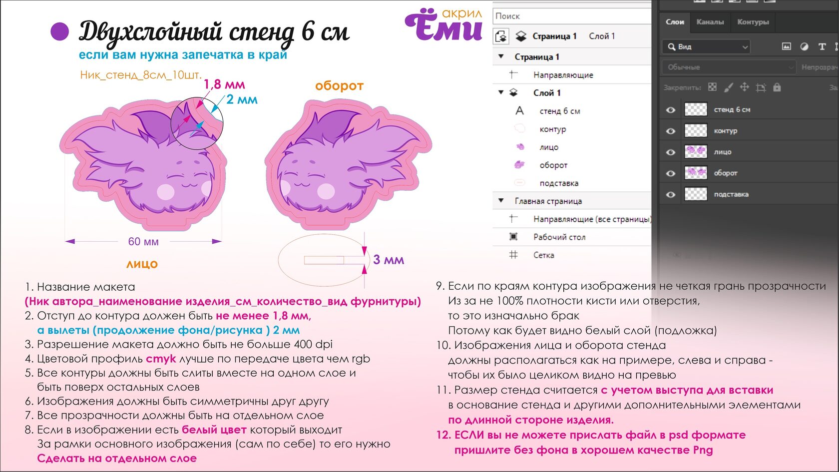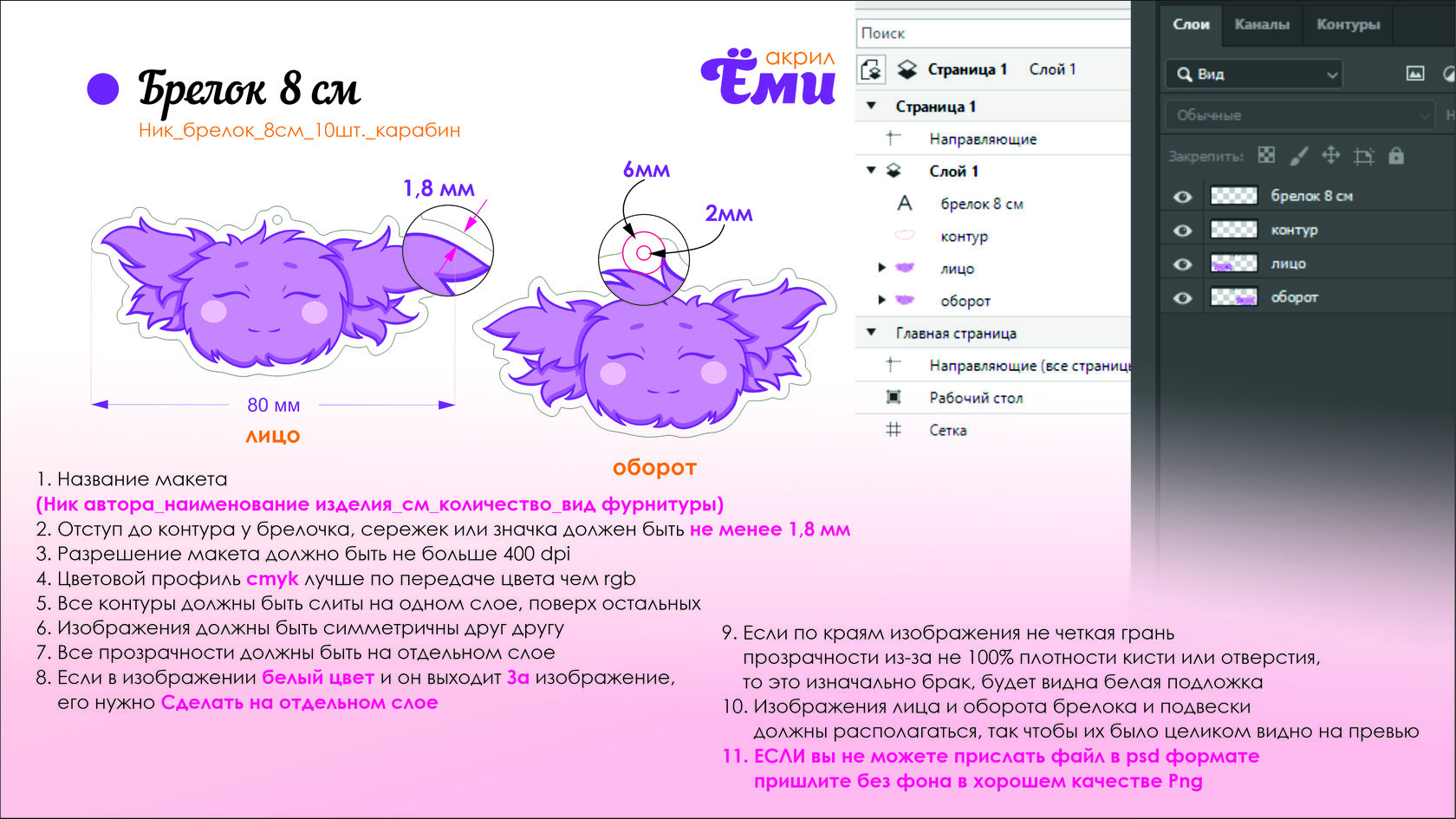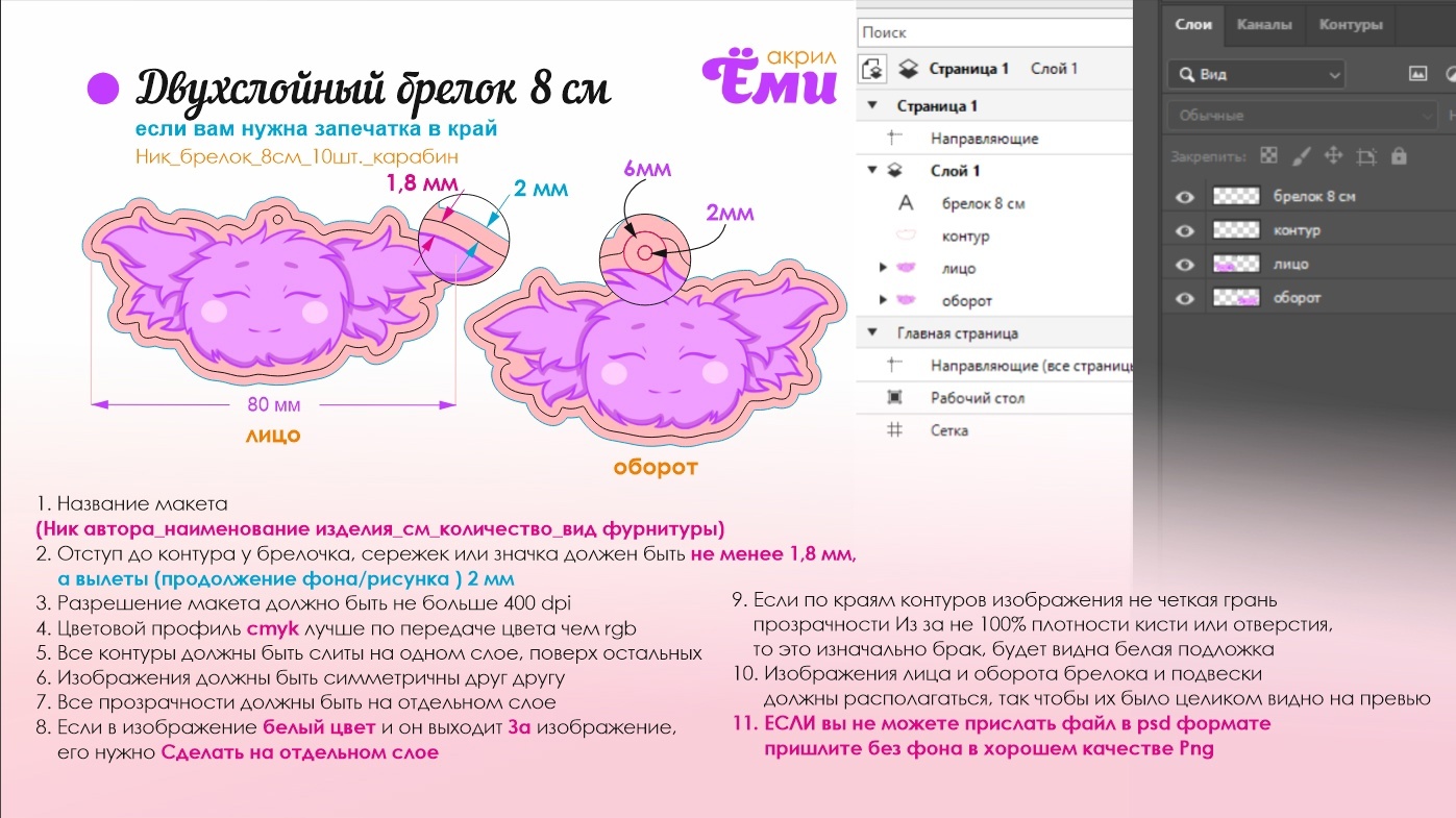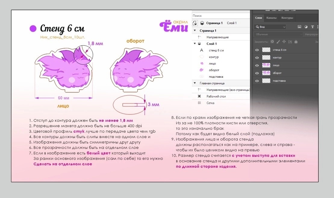 Какой формат айла с макетом выбрать? Какой цветовой профиль для макета мерча из акрила? Как прислать макет? Как назвать файл с макетом?
