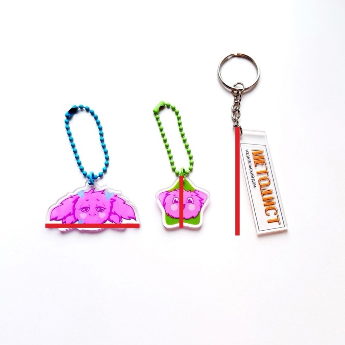 3) Измеряется ВКЛЮЧАЯ ушко у брелка/сережки или выступ под подставку у стенда — от края до края.